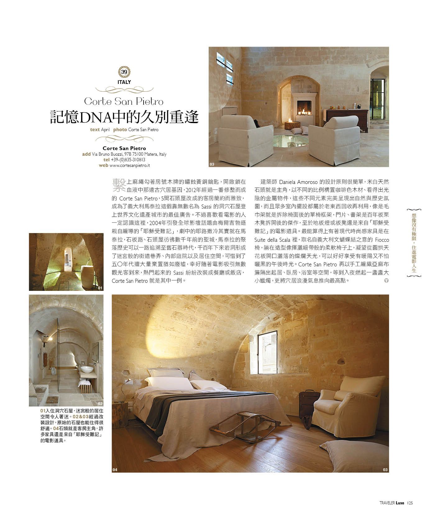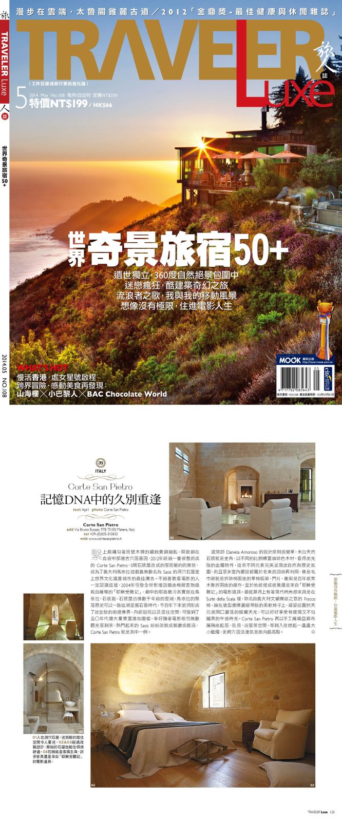 In its May 2014 issue, the prestigious Asian travel magazine Traveler Luxe listed Corte San Pietro among the 50 most extraordinary hotels in the world. A recognition from one of the most respected publications in the luxury travel industry, celebrating our boutique hotel in the Sassi of Matera as a timeless sanctuary capable of stirring deep emotions through the elegance of stone.
